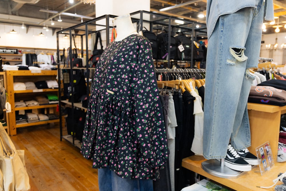私、実は6月にイオンモール草津店からこっちに来たんですけど、お客様にちゃんと伝えられていないんですよ。あまり知られてなかったりとか。なので、よかったらエイスクエア店に遊びに来てください!こういう感じのファッションが好きな方は、ぜひ一緒にお話ししましょう♪