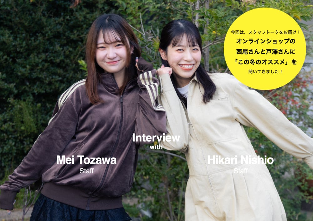 今月は、オンラインショップの西尾さんと戸澤さんによる、スタッフトークをお届け!この冬2人が気になるイチオシアイテムや、普段のこと、最近ハマっていることなど、今回もたっぷり聞いてきましたよ!ぜひご覧ください♪